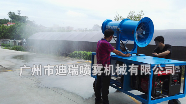 移動(dòng)式噴霧風(fēng)炮,移動(dòng)方便,高空噴射,操作簡單,整機(jī)結(jié)構(gòu)緊湊合理,自帶水箱和輪胎,移動(dòng)方便。還可選裝內(nèi)置柴油發(fā)電機(jī)組,汽油發(fā)電機(jī)組等,實(shí)現(xiàn)隨時(shí)移動(dòng)作業(yè)。迪瑞噴霧風(fēng)炮原理是利用高壓方式將水霧化,通過風(fēng)送裝置擴(kuò)散到需要揚(yáng)塵控制的區(qū)域,使水霧與粉塵顆粒充分接觸、碰撞、結(jié)合變成大顆粒團(tuán)聚從而自然沉降,達(dá)到去除揚(yáng)塵、潔凈空氣稀釋有害氣體、降溫等多重功效。噴霧風(fēng)炮比傳統(tǒng)的灑水噴淋降塵效果更好,單機(jī)噴霧量大、送風(fēng)距離遠(yuǎn),霧滴粒徑和水量可靈活調(diào)節(jié),可固定使用也可移動(dòng)使用,機(jī)動(dòng)靈活。 特別適用于大面積粉塵環(huán)境、彌散性揚(yáng)塵的壓制。